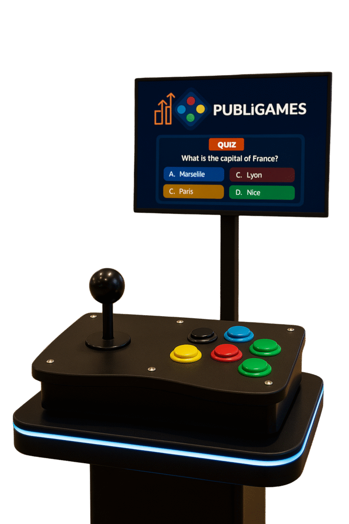 Quizzes, desafios e jogos personalizados para ações promocionais, feiras e ativações de marca.